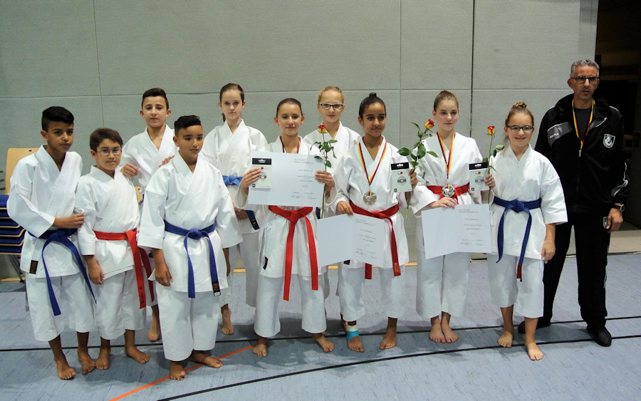 Am 05.11.2016 belegte das Team SKA Rülzheim 2 (Adelina Brauer, Süeda Has und Melanie Schönknecht) bei den Deutschen Meisterschaften der Schüler in Ilsenburg den hervorragenden 2. Platz. Gegen insgesamt 16 Mannschaften setzte sich unser Team in der Kategorie Schüler Kata Team Mädchen bis ins Finale durch und erreichte dann den 2. Platz. Den 7. Platz belegte das Kata Team Mädchen SKA Rülzheim 3 (Cellina Apfeld, Ilma Osmic und Darleen Hohendorf). In der Kategorie Schüler A Kata Einzel Jungen belegte Yassin El`yahyaoui den 7. Platz, ebenso wie Bilal-Rahal Aboussaad bei den Schüler B Kata Einzel Jungen. Im Medaillen-Spiegel befindet sich Rheinland-Pfalz auf dem 2. Platz. Ein Herzliches Dankeschön geht an die Eltern für die tatkräftige Unterstützung.