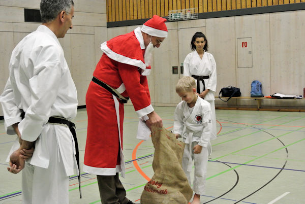 Ganz überraschend machte der Nikolaus am 14.12.2017 nochmals Halt in Rülzheim bei den SKA-Bambinis. Sein Schimmel und er haben die weite Reise nochmals aufgenommen, um den Kindern eine kleine Überraschung zu bringen. Nachdem er ein Gedicht aufgesagt hatte und die Kinder nach ihrem Karatewissen gefragt hatte, durfte jedes Kind in den großen Sack fassen und einen Schokolade-Nikolaus herausholen. Zum Schluss trugen noch 2 Kinder je ein Gedicht vor, bevor der Nikolaus seine Kutsche wieder bestieg und weiterzog.