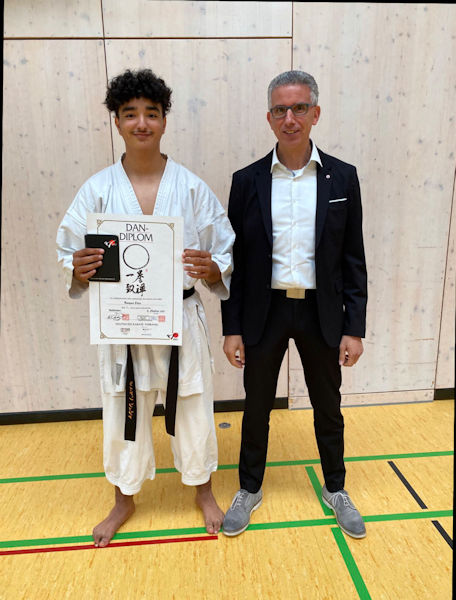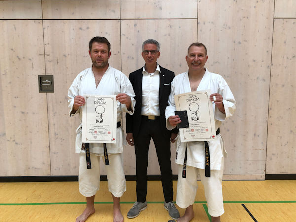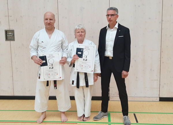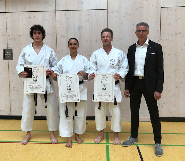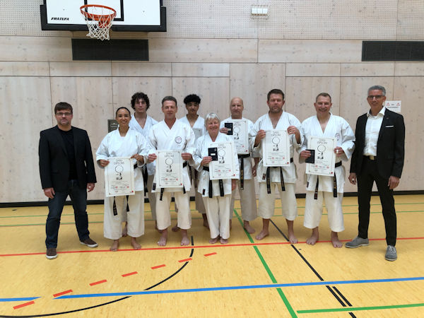 Unsere Dan-Anwärter fieberten dem Prüfungstermin am 31.10.2021 mit intensiven Vorbereitungen über mehrere Monate wöchentlichem Zusatztraining entgegen. Verschiedene Katas, sowie Bunkai und Kumite stehen zur Auswahl und müssen je nach Anweisung der Prüfer vorgeführt werden. Die Prüflinge kennen zwar neben der Kata und der Bunkai, die sie für sich zur Prüfung ausgesucht haben, die Auswahl der Katas, die sie zusätzlich können müssen, jedoch nicht die Auswahl der Prüfer. Wir bedanken uns bei den beiden Prüfern Andra Ziza von der SKA Rülzheim und Marcus Gutzmer vom Budokan Kaiserslautern und gratulieren unseren Karatekas zu den erfolgreich abgeschlossenen Prüfungen. Marcus Schmock und Volker Albrecht zum 4. Dan, Brigitte Schaaf und Marcus Klöditz zum 3. Dan, Aouatif Ziza, Rüdiger Bolz und Constantin Gschwind zum 2. Dan und Rayan Ziza zum 1. Dan. Rayan Ziza ist der jüngste DAN- Träger, der die DAN-Prüfung in unserem Verein absolviert hat. Dazu auch nochmal herzlichen Glückwunsch.