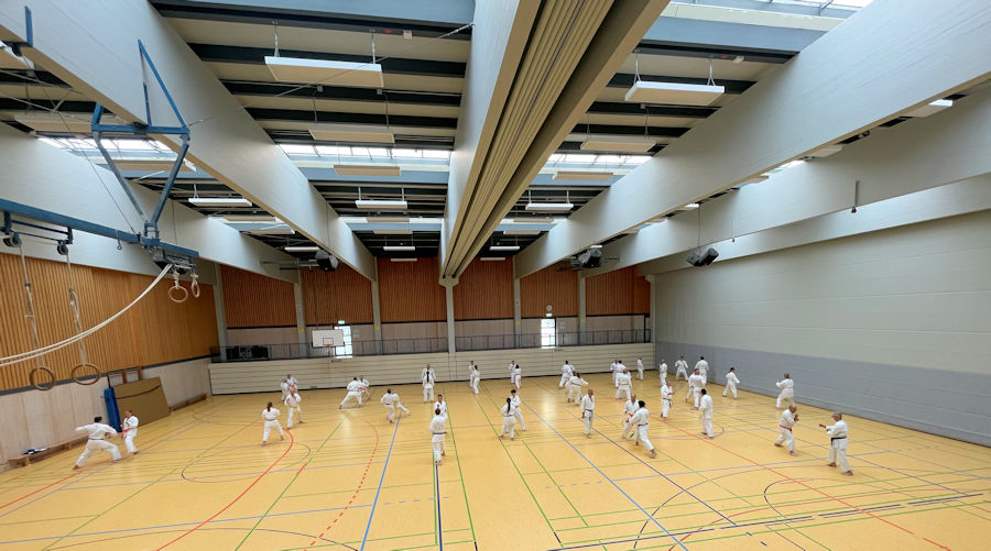 Die Unterstufe musste ihr Tempo und ihre Reaktionszeit erhöhen, die Mittel- und Oberstufe das Tempo auf die Unterstufe anpassen. Für beide Seiten eine Herausforderung. Natürlich stimmte unser Trainer Sensei Andra Ziza die Trainingseinheiten so ab, dass alle Trainingsteilnehmer ihren Spaß am Training hatten.