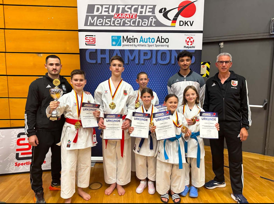 Am vergangenen Samstag, dem 02.11.2024, fand die Deutsche Meisterschaft der Schüler statt bei der sich die besten Nachwuchsathleten aus ganz Deutschland miteinander messen konnten. Unser Verein wurde stolz vertreten durch Arian Boland Bakhsh und Robin Fürst in der Kategorie Kata Einzel U14 sowie Karina Haiduc in der Kategorie Kata Einzel U12. Zusätzlich traten Arian, Robin und Leandro Kessel im Team Kata Jungen sowie Karina, Enissa Korrani und Luisa Gütermann im Team Kata Mädchen an.