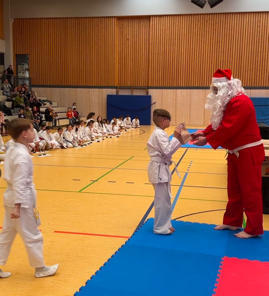 Am Samstag, den 14. Dezember 2024, fand unsere alljährliche Weihnachtsfeier statt, die in diesem Jahr in Form eines Kinderturniers gestaltet wurde. Die Veranstaltung begann um 9 Uhr mit dem feierlichen Einlauf der Kinder, begleitet von stimmungsvoller Musik, die für eine festliche Atmosphäre sorgte. Die Vorfreude und Aufregung der jungen Karateka war deutlich spürbar, und alle waren bereit für einen sportlichen und ereignisreichen Tag.
